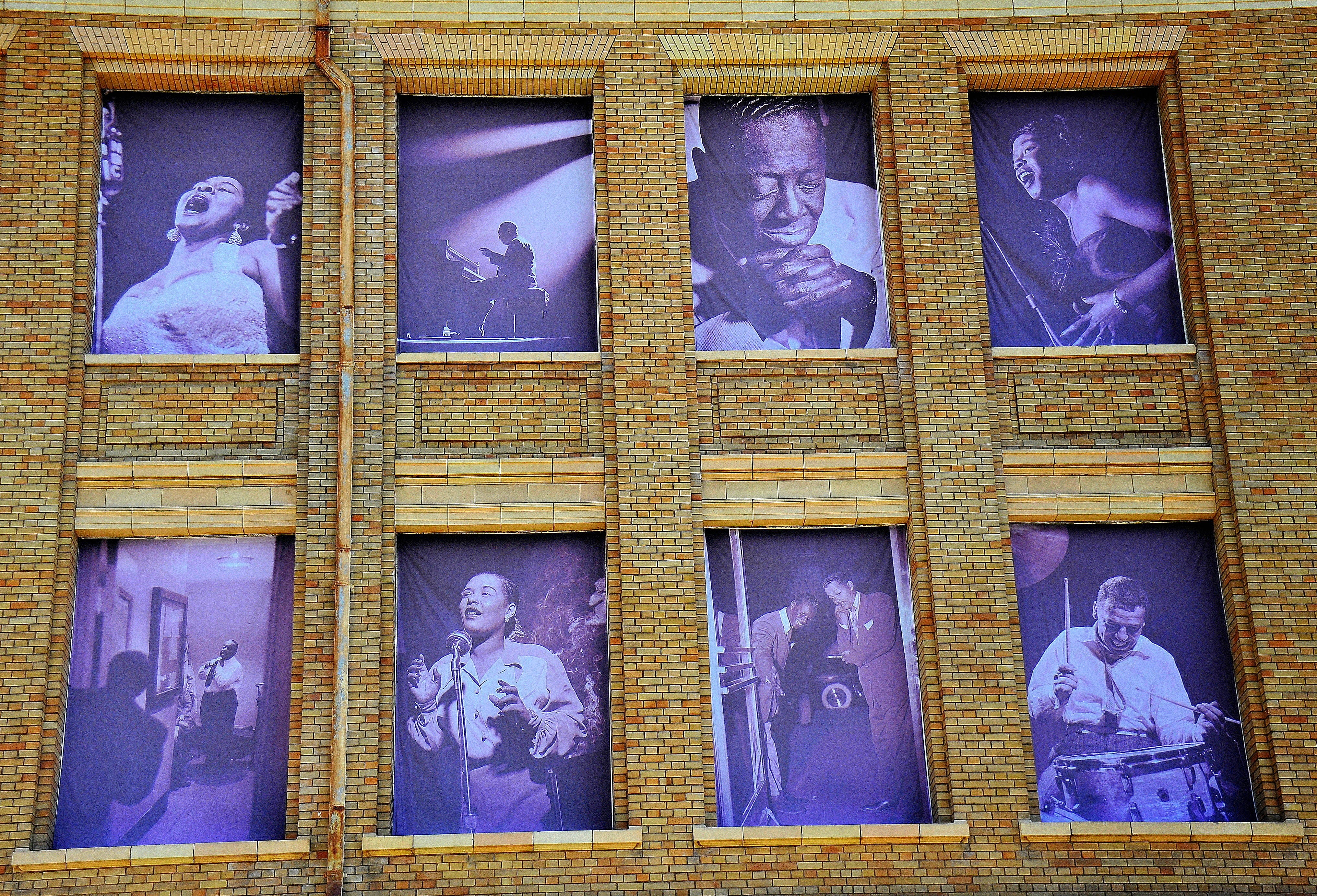 Last week, Lee Prout sent along photos he took about 10 years ago of the exterior of SF Jazz’s San Francisco offices, which showcased Leonard’s images in the windows. Here are two below…