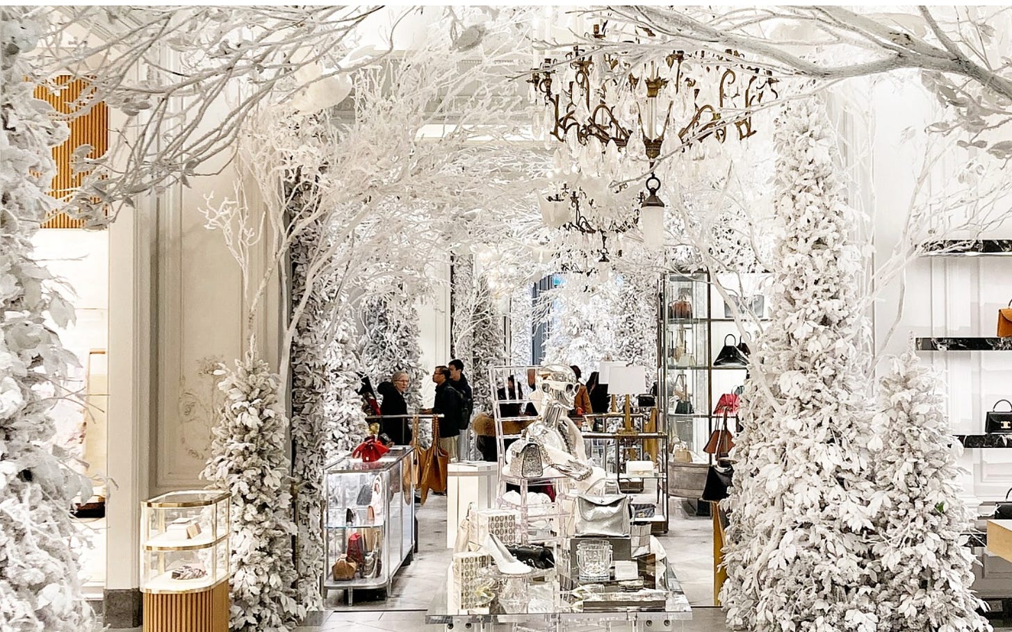 New York between Thanksgiving and the December holidays is the best time of year. Store windows are alive with festive decorations, and the interiors of major stores are a sight to behold. If you’re in Midtown, be sure to check out the main floor of Bergdorf Goodman (above). It’s all done in white, as if a fresh snow has fallen. Winter wonderland, indeed.