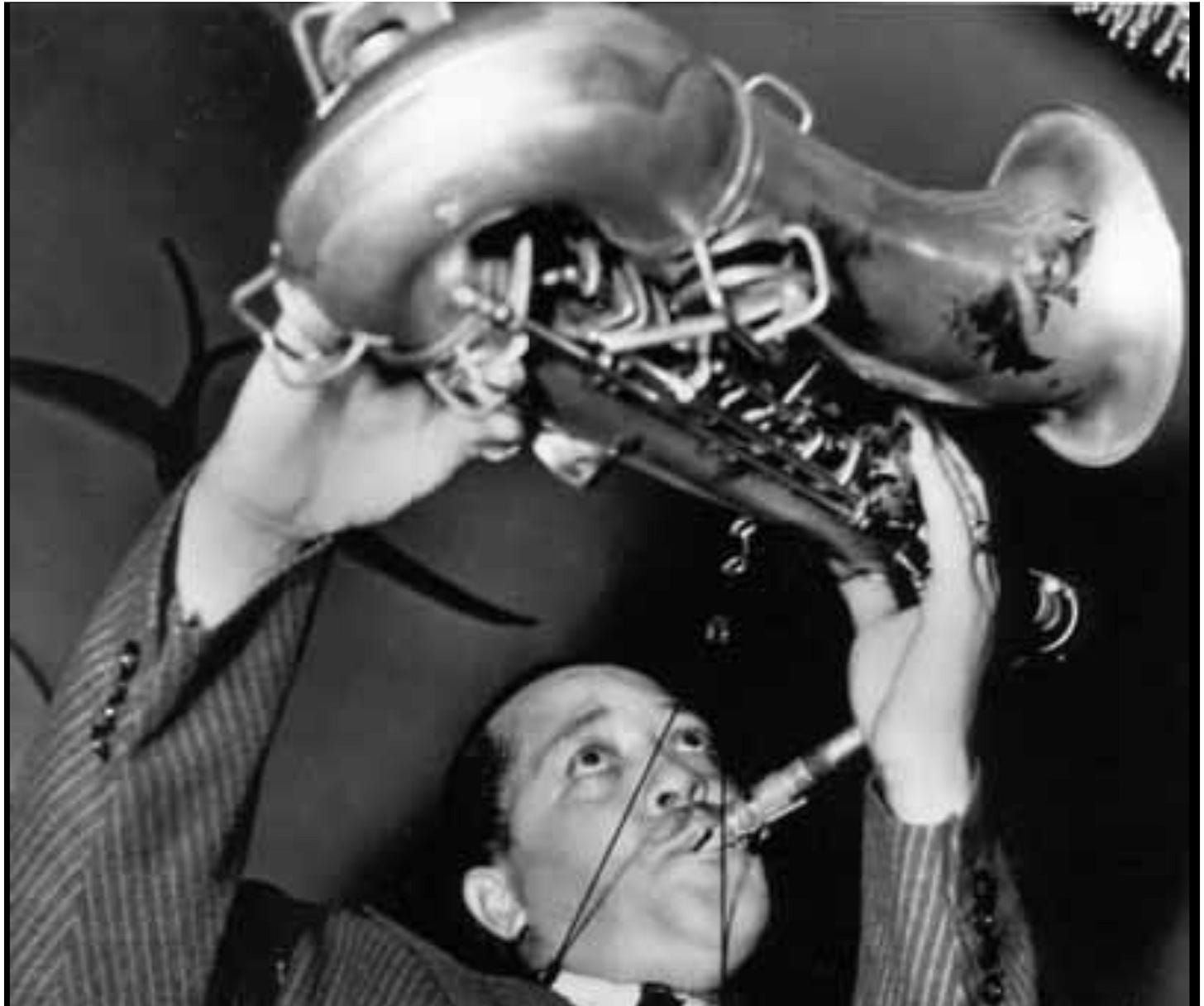 From the start, jazz was about syncopation—the adding of rhythmic emphasis where there wouldn’t normally be one to facilitate an upbeat spirit and dancing. Jazz’s first major movement was ragtime, which started in the 1890s and lasted until around 1910. Early on, it employed syncopation on the piano. Why did ragtime emerge in the 1890s and not earlier or later? [Photo above of Lester Young improvising while holing his tenor saxophone at a 45-degree angle]
