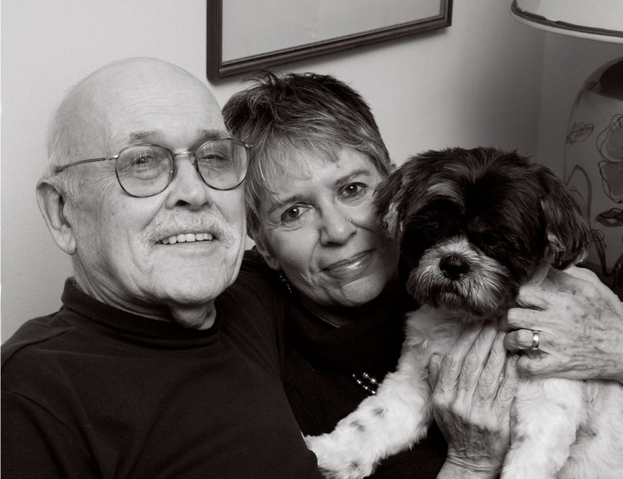 Guitarist Jim Hall and alto saxophonist Paul Desmond collaborated on six albums for RCA between 1959 and 1965. My two favorite LPs are Glad to Be Unhappy and Bossa Antigua. Both were produced by George Avakian, recorded in 1964 and released a year later. [Photo above of Jim and Jane Hall and their dog, Django, in the 2000s]