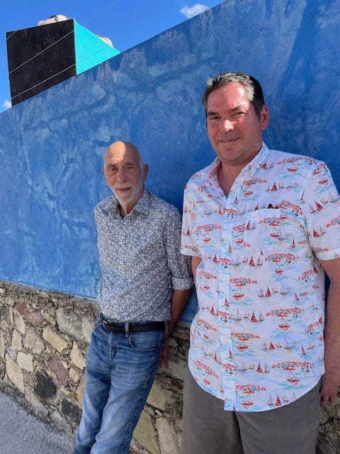 Gilles had recommended many months earlier that I make a move and he outlined how to do it. He planted the seed and anticipated a meltdown at my former location, and he was right. Bret was already on Substack and fluent in the platform. He spent days working with me to build out the site you see now. And Stuart, an attorney, jazz guitarist and coding wizard, rolled up his sleeves and over the course of weeks and many hours managed to pull all of my old posts loose and import them here for the archive you’re enjoying now. [Photo above, from left, Bret Primack with JazzWax reader Peter Coppock, this week in the Central Highlands of Mexico, by Paul Newton]