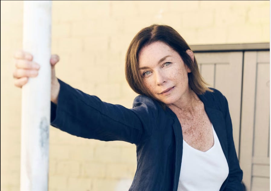 Julianne Nicholson is an actress who won Emmys for her roles in the series “Mare of Easttown” and “Hacks.” She co-stars in the new season of the Hulu series “Paradise.” [Photo above of Julianne Nicholson in 2925 by Shayan Asgharnia]